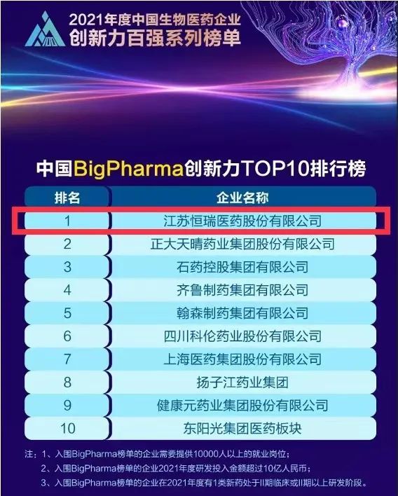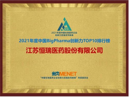 9月16日,由米内网主办的“2021年度中国生物医药企业创新力百强系列榜单”发布会在线上举办。DB电竞医药继去年登顶“中国BigPharma企业创新力TOP10排行榜”后,今年再次名列该榜单首位。