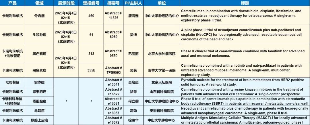 此外,在头颈肿瘤、黑色素瘤、骨肉瘤、鼻咽癌、肾细胞癌、尿路上皮癌等多个领域,卡瑞利珠单抗、吡咯替尼等产品相关研究一共入选了4项壁报展示和5项线上发表,彰显了DB电竞医药强大的自主研发综合实力。