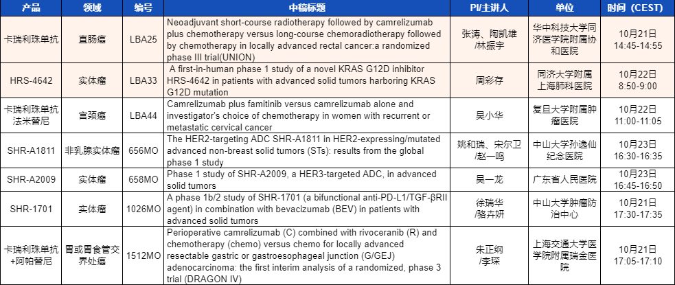 ESMO 2023 DB电竞医药产品相关研究一览