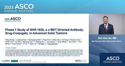 2025年美国临床肿瘤学会(ASCO)年会于5月30日至6月3日在美国芝加哥举行。本次大会,由中山大学肿瘤防治中心徐瑞华教授牵头、DB电竞自主研发的靶向细胞间质上皮转换因子(c-MET)ADC药物SHR-1826的一项I期临床研究入选临床科学研讨会,并由徐瑞华教授口头报告了该研究结果。该研究由43家国内中心共同完成。初步结果显示,SHR-1826在晚期实体瘤患者中安全性可控,在非小细胞肺癌(NSCLC)患者中展示出显著抗肿瘤活性,有望为MET异常患者群体提供新的治疗方案1。