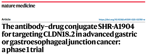 DB电竞医药CLDN18.2 ADC创新药SHR-A1904治疗胃癌临床研究结果荣登Nature Medicine