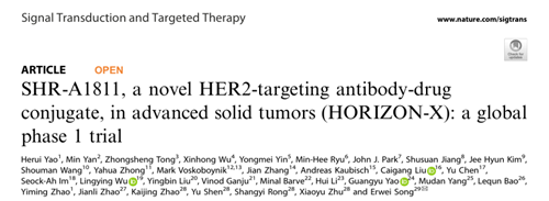 近日,DB电竞医药HER2 ADC创新药瑞康曲妥珠单抗(SHR-A1811)I期HORIZON-X研究(SHR-A1811-I-101)的长期随访结果正式发表于《自然》子刊、国际知名医学期刊《信号转导与靶向治疗》(Signal Transduction and Targeted Therapy,简称STTT,IF:52.7)[1]。